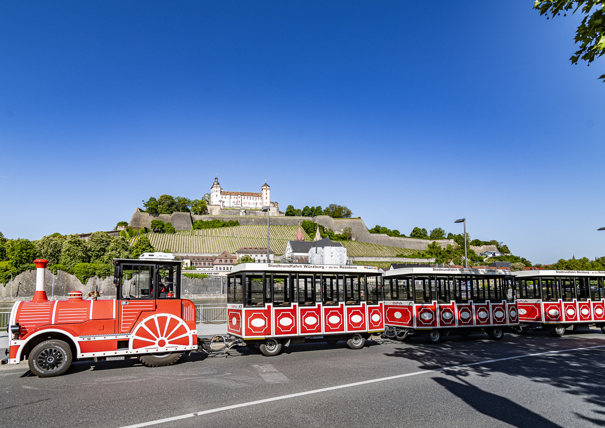 Fahren Sie mit CITY TOUR durch die Altstadt und durch die einzigartige Geschichte Würzburgs. Von der prunkvollen Residenz, zum Dom, den Main entlang und in Sichtweite an der Festung Marienberg vorbei. Alles ist für Sie bequem von der Bahn aus zu bestaunen. Nebenbei erfahren Sie Witziges und Wissenswertes, Altertümliches und Aktuelles, Glanzvolles und möglicherweise auch Grausames, Romantisches und Temperamentvolles über Würzburg und seine Bewohner. Auf dieser Tour erleben Sie die Highlights aus mehreren Jahrhunderten in ca. 40 Minuten und können danach die Stadt gezielt auf eigene Faust erkunden, sich einer Stadtführung zu Fuß anschließen oder eine Fahrt auf dem Main z.B. nach Veitshöchheim unternehmen.